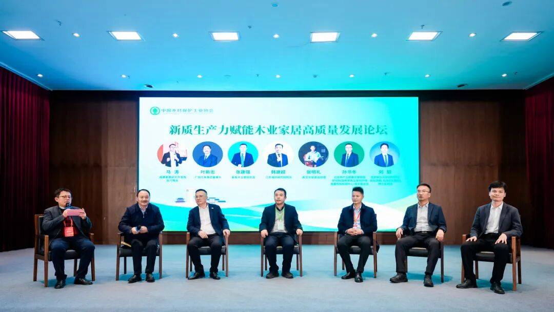 “新质生产力赋能木业家居高质量发展”专题论坛由南康家具研究开发院执行院长马涛主持。壮象集团董事长叶新忠、鲁丽集团营销总监张建强、美至宅家居总经理张明礼、江苏福庆研究院院长韩建超、北京林业大学副教授刘毅、国家家具质检中心常务副主任孙书冬六位嘉宾,围绕智能制造、品牌建设、数字化营销、全链路数据打通、前沿材料研发、质量标准升级等核心议题展开了深入探讨。嘉宾们一致认为,新质生产力正驱动产业向更智能、更绿色、更高效、更以消费者为中心的方向深刻变革,并分享了各自在技术创新、模式升级与协同发展方面的具体实践与思考。